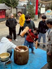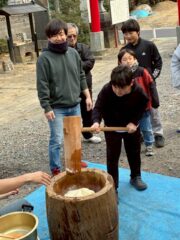 1月25日(日)土屋自治会館で「鏡開き」を開催しました。小学生・中学生は順番に餅つきを行い、12月に実施した級審査の結果発表の後、各自今年の抱負・目標を発表してもらいました。初心を忘れず今年もがんばっていくましょう。